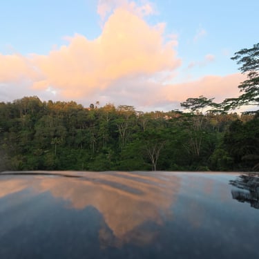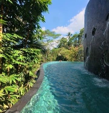 Spend a day a luxurious Day Pool Club with three levels of pools and jacuzzis overlooking the rice fields.